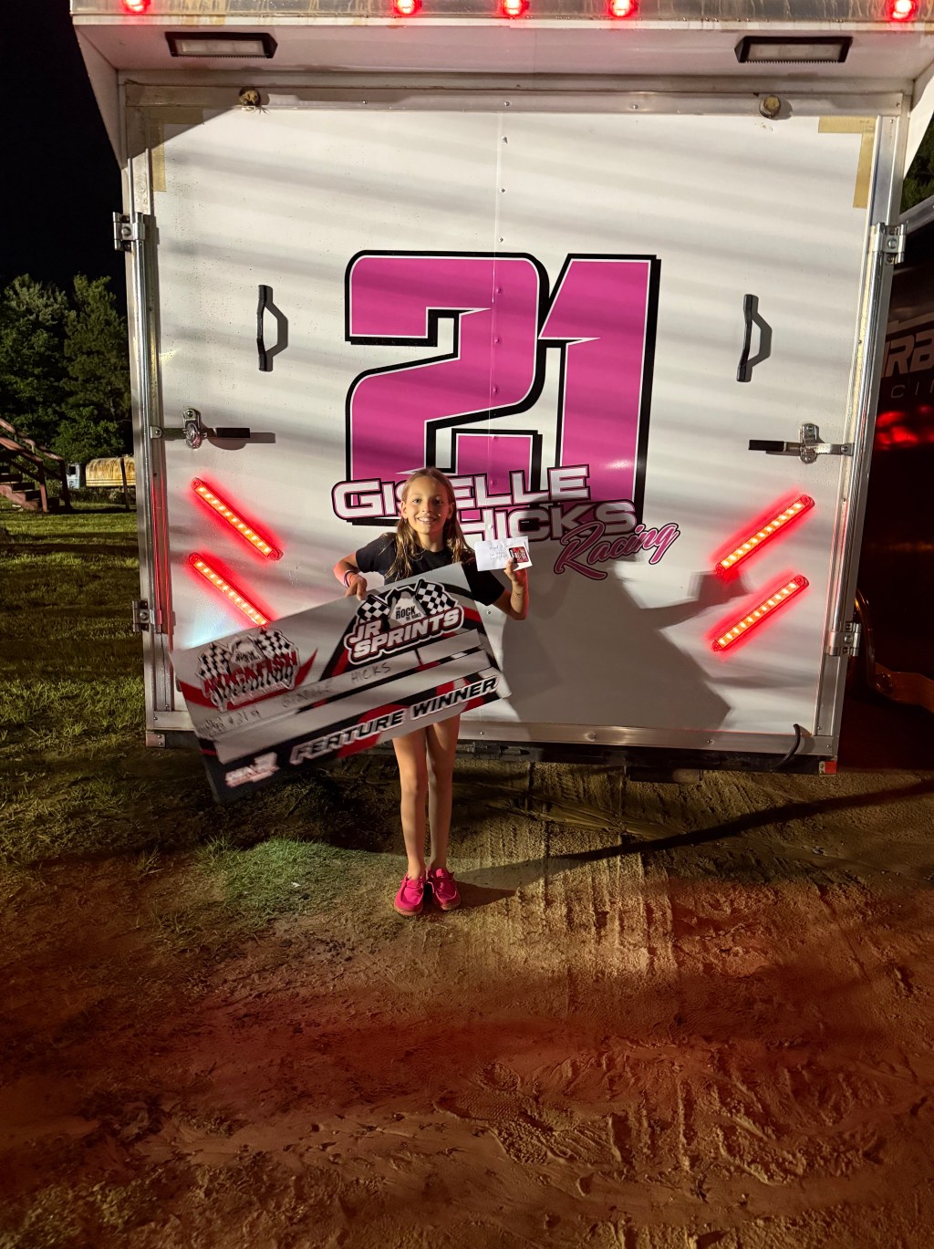 Giselle brought home the Junior Sprint feature win Saturday night at Rockfish Speedway. This was only her second race in the class, and she showed impressive composure and speed throughout the night.